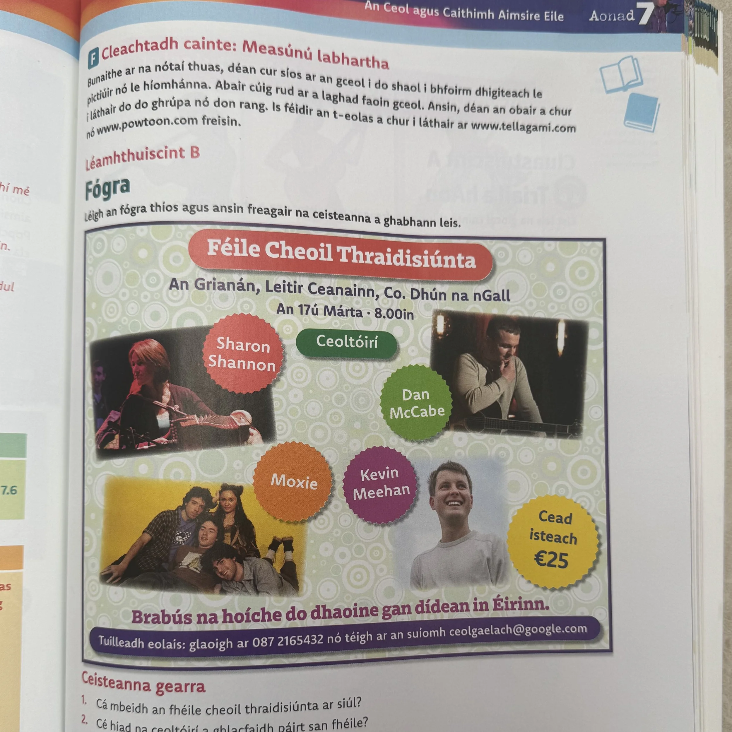 Featured in Mol an Óige 1 (Junior Cycle Irish textbook), studied in secondary schools across Ireland.