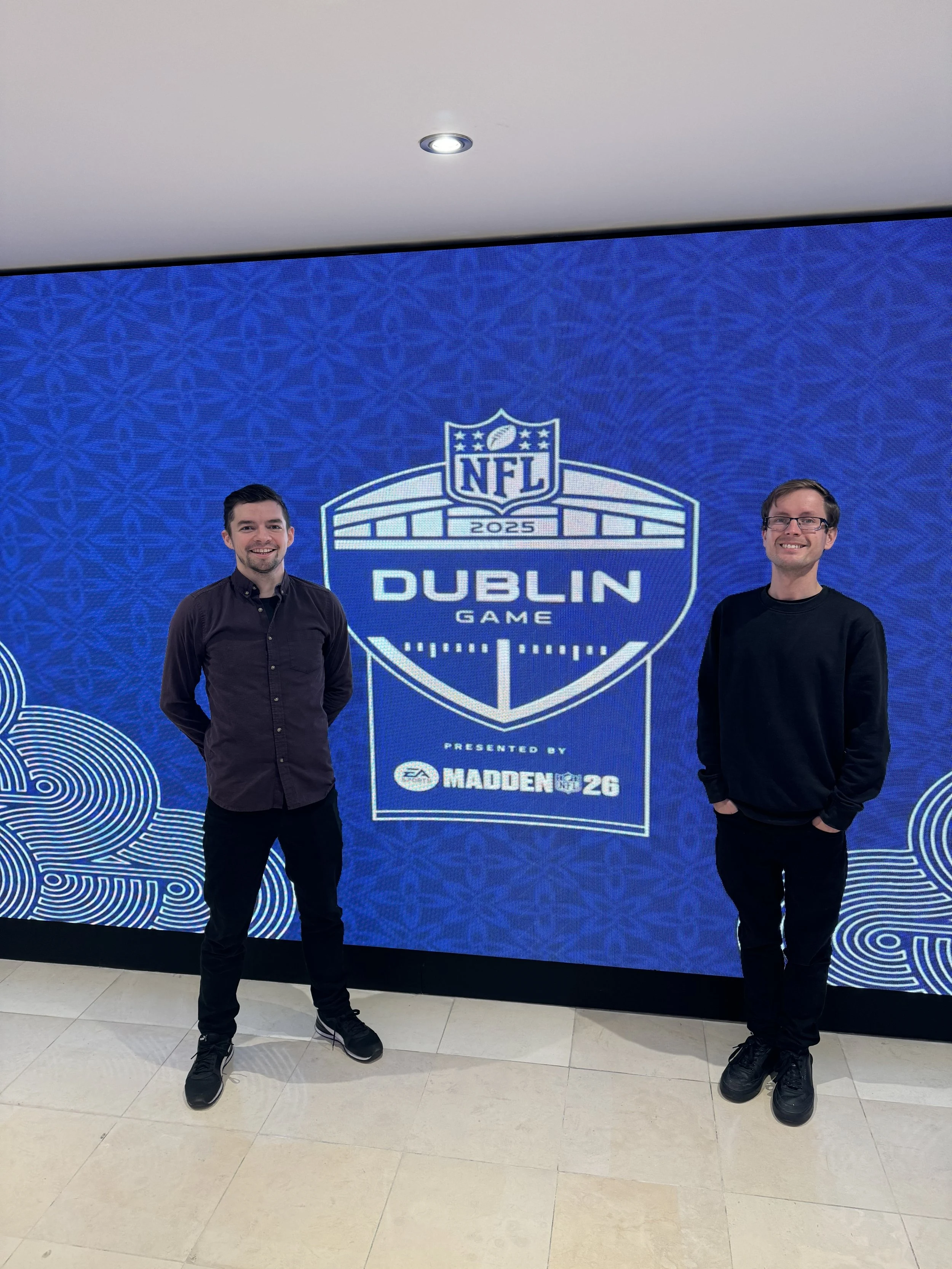 His street performance group Rock The Shop played at Croke Park for the entire NFL administration team the day before an NFL game in September 2025.